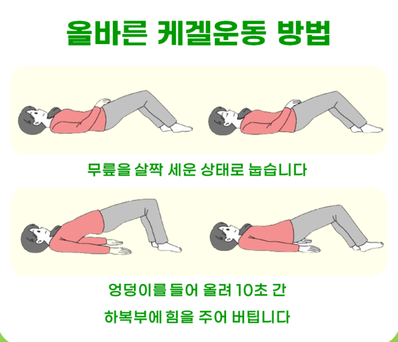 - 운동 중 통증이 있는 경우 케겔운동 중 골반 부위에 통증이 발생한다면 즉시 중단하고 전문가와 상담해야 합니다.